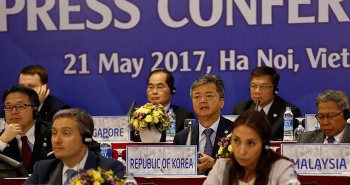 El texto no menciona en ningún momento al presidente de EU, Donald Trump, y la política que ha puesto en práctica de abandonar o renegociar los acuerdos comerciales que cree perjudican a su país, aunque el asunto ha estado presente en las conversaciones mantenidas en Hanoi.