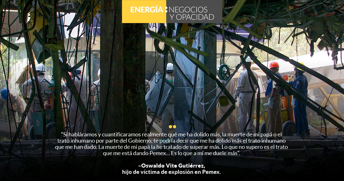 Alberto Guerrero Rojas, abogado defensor de los deudos, refiere dos problemas en el caso: Pemex hizo que los deudos firmaran la renuncia a la indemnización civil, un derecho inalienable; y los tribunales que han llevado el caso de demanda entorpecieron el caso con criterios “arbitrarios”. Así han pasado más de cuatro años. En conjunto, las familias Vite, Ojeda y Hernández le reclaman al Estado 15.5 millones de pesos en indemnizaciones. Pero lo que más exigen, es que las autoridades den la cara por su pérdida.