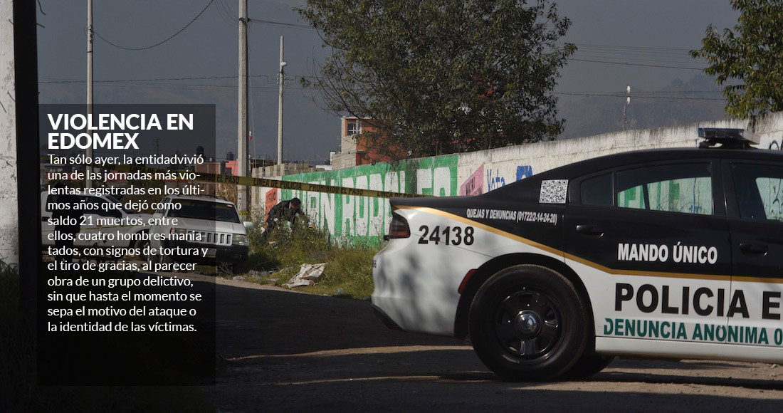 En el Estado de México, a mitad de este mes que correo se vivió una de las jornadas más violentas registradas en los últimos años que dejó como saldo 21 muertos.