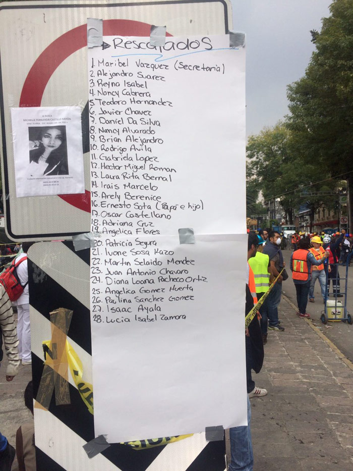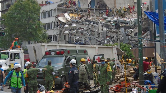 “Nos juntamos todas las familias y empezamos a organizar. Luego llegaron elementos provenientes de Israel y trajeron su maquinaria y están detectando a las personas”, comentó Fernanda Sandoval Osorio, hija de Jorge Sandoval Chávez que se encuentra bajo los escombros del edificio.