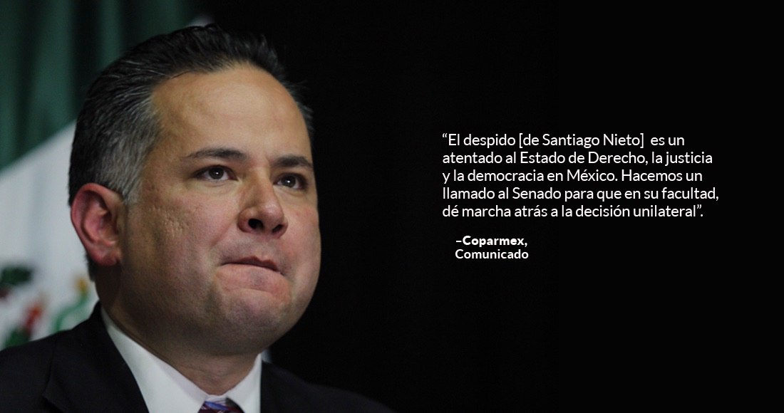 Empresarios, grupos civiles, partidos, empresarios, ciudadanos y activistas protestaron por la la destitución de su cargo de Santiago Nieto Castillo de la Fiscalía. Todos llegan a un misma conclusión: el cese intenta mantener en la oscuridad los presuntos sobornos entregados por la empresa brasileña Odebrecht a políticos mexicanos y, en particular, a Emilio Lozoya.