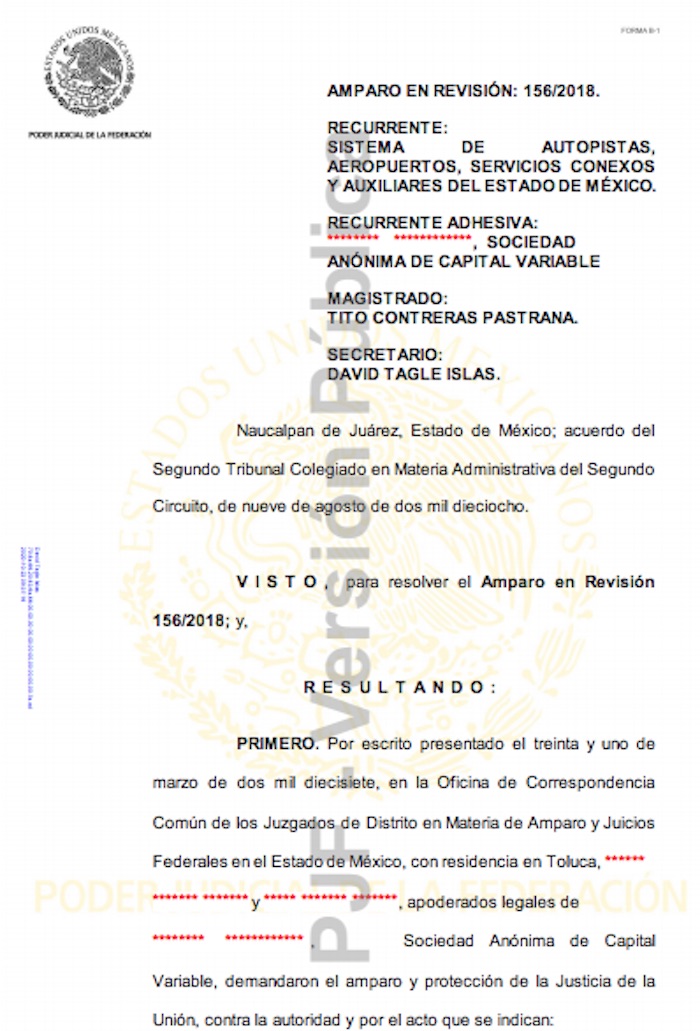 Miguel Ángel Burguete García, Juez Octavo de Distrito de la entidad, con sede en Naucalpan, resolvió que el Sistema de Autopistas, Aeropuertos, Servicios Conexos y Auxiliares del Estado de México (Saascaem) no está facultado para sancionar y anuló el procedimiento administrativo, sin embargo, no exoneró a Aleatica, por lo que la Secretaría de Comunicaciones y Transportes local puede iniciar un nuevo trámite para cobrar la millonaria multa.