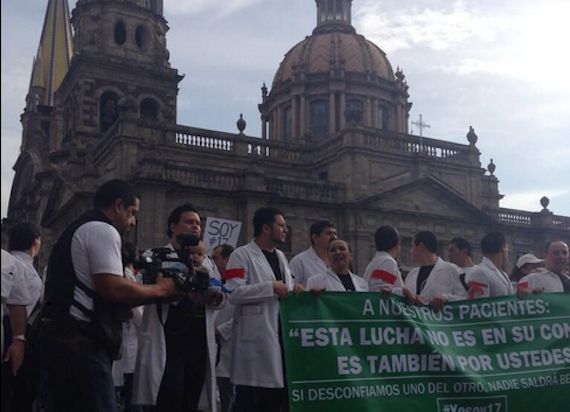 México, 22 Jun. (SinEmbargo).- Médicos de todo el país dieron inicio a una movilización nacional este domingo en al menos 50 ciudades, en solidaridad con 16 de sus colegas que enfrentan un proceso penal por presunta negligencia en la muerte de un menor en el Hospital de Pediatría del Instituto Mexicano del Seguro Social (IMSS) en Jalisco a principios de 2010.