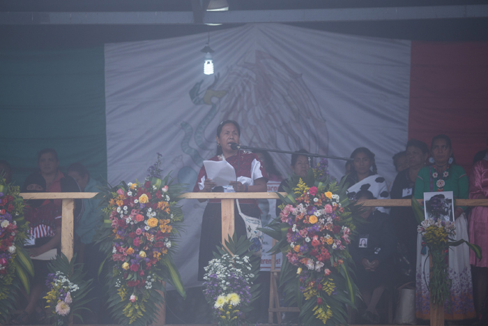 Ante decenas de simpatizantes tzotsiles y tzetales , "Marichuy" resaltó que "las mujeres indígenas, en nuestra triple condición de mujeres, de indígenas y de pobres, vivimos la mayor de las opresiones dentro de este sistema". Sin embargo, dijo con más fuerza, "es la hora de las mujeres que luchan y se organizan por [ver] nacer su libertad, por nacer su patria nueva con justicia".
