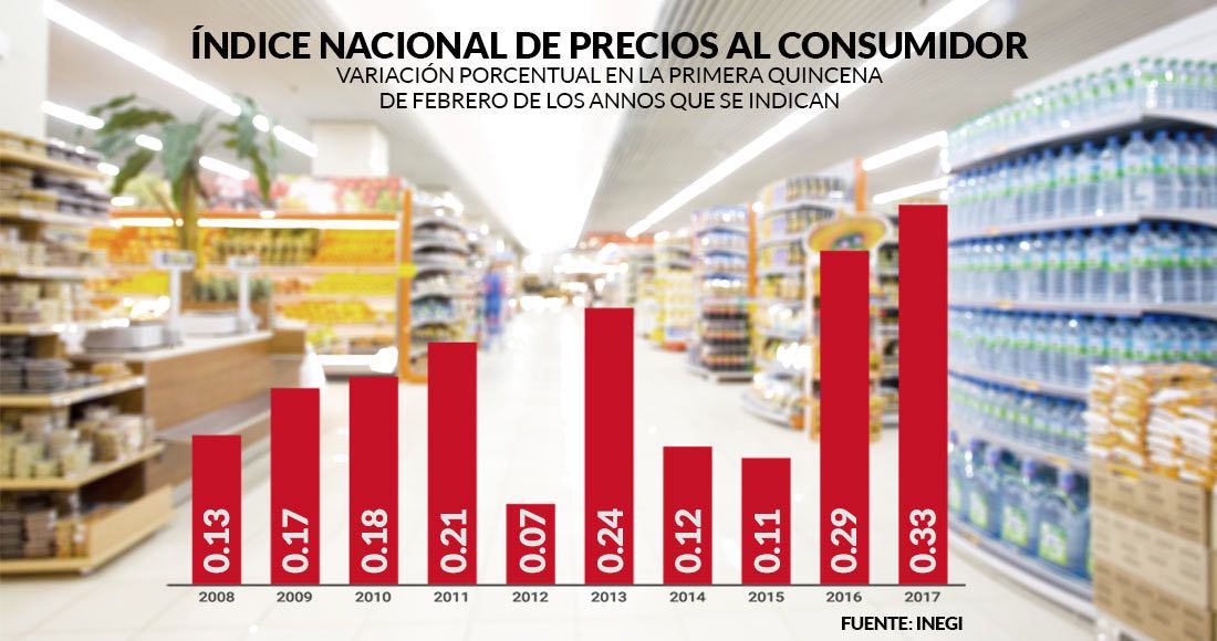 "Se prevé que durante 2017 la inflación se ubique por arriba de la cota superior del intervalo de variación del Banco de México, si bien se espera que a finales de ese año retome una tendencia convergente hacia la meta y se sitúe cerca de 3 por ciento al cierre de 2018", manifestó.