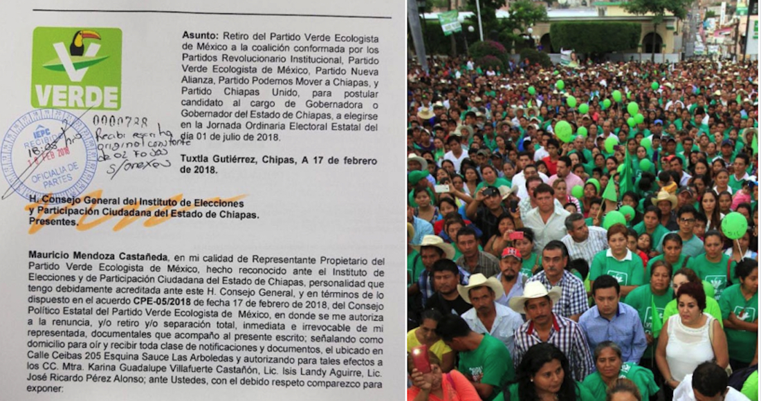 El PVEM planea una alianza con PAN, PRD, MC, y los partidos locales Podemos Mover a Chiapas y Partido Chiapas para enfrentar a los candidatos del PRI y de Morena.