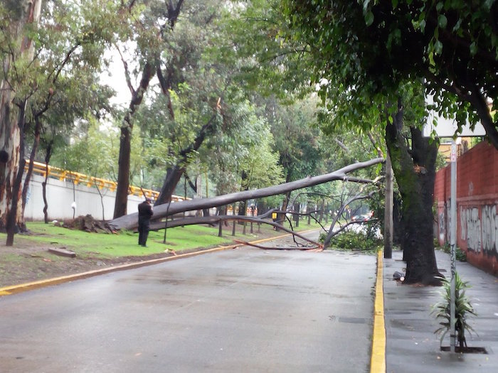 La caída de un árbol tuvo lugar en Circuito con dirección a Insurgentes. Uno más cayó en las laterales de Churubusco con dirección a Tlalpan. En ambos sitios llegaron unidades de emergencia para despejar la vialidades.