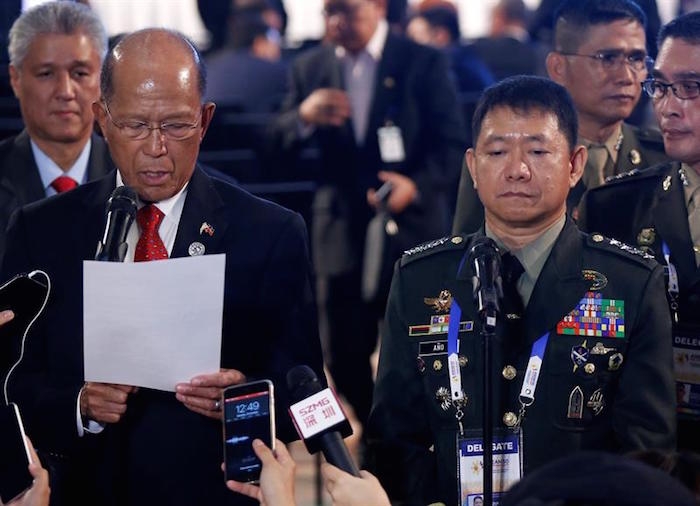 Presidente Rodrigo Duterte, y el Ministro de Defensa, Delfin Lorenzana. Foto: EFE