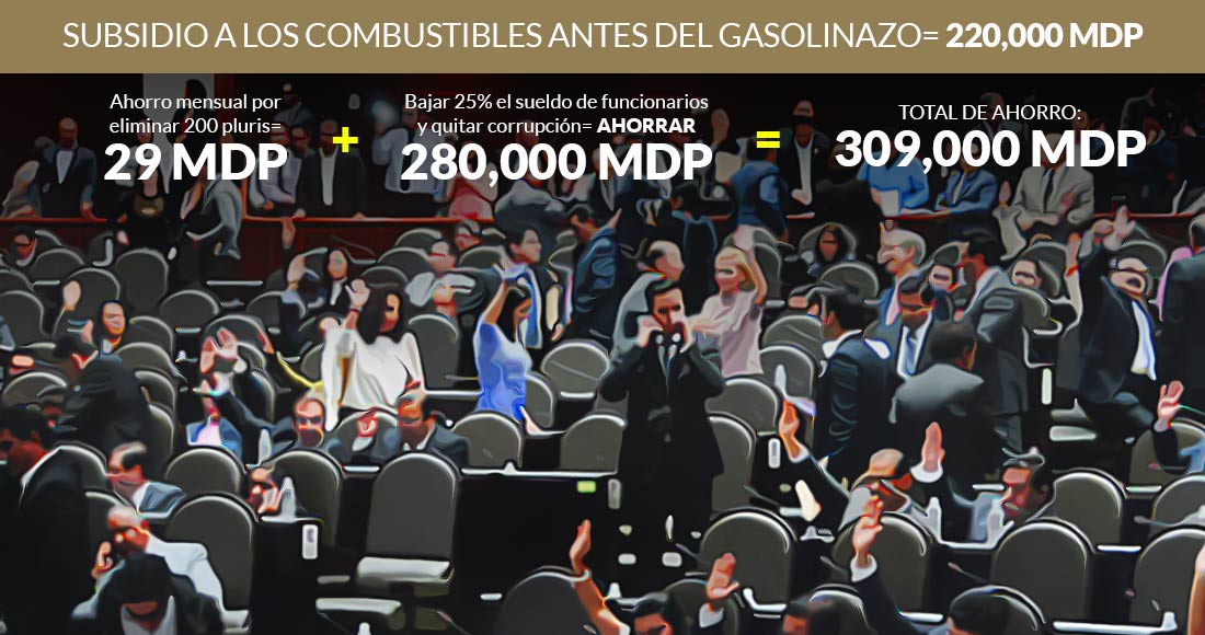 Dip pidió eliminar a los diputados plurinominales que ya no tienen razón de existir y "solo levantan el dedo" para aprobar dictámenes "al vapor". Si se considera que los diputados reciben por sueldo más de 148 mil pesos al mes, erradicar a los 200 de representación proporcional implicaría un ahorro por 29 millones 675 mil pesos al mes.