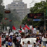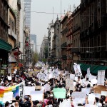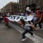 MÉXICO, D.F. (apro).- Con pocos minutos de diferencia al cierre del candidato presidencial priista en el Estadio Azteca, en las calles del Centro Histórico y en el Paseo de la Reforma miles de jóvenes y ciudadanos protagonizaron la tercera marcha anti-Peña Nieto realizada en la Ciudad de México.