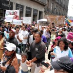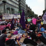 Simpatizantes de la candidata a senadora del PAN, Rosi Orozco, fueron echados de la marcha con el grito de “¡fuera, fuera!”, mientras un contingente de decenas de jóvenes portaban un cartelón con la frase “Alto al feminicidio y a la tortura sexual”.
