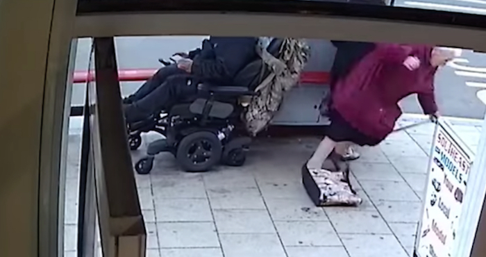 Como se puede apreciar en la grabación, el sujeto primero atropella a una de las mujeres, provocando que caiga violentamente, y después acomoda su silla de ruedas motorizada para embestir a la otra víctima. Las mujeres se encontraban junto a una parada de autobús. Cuando la segunda mujer cae, un joven se acerca para ayudar a las víctimas, mientras el agresor se retira.
