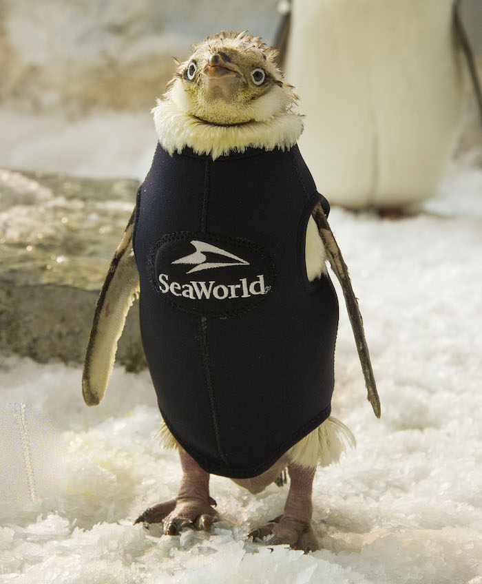 Una pingüino de SeaWorld recupera su plumaje gracias a un traje térmico