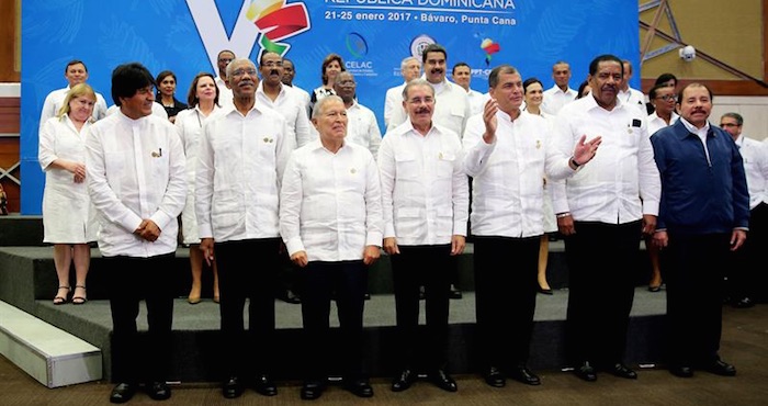 Bávaro (R.Dominicana), 25 ene (EFE).- La Celac concluyó hoy en República Dominicana su V cumbre con una tímida declaración en contra de las nuevas políticas de Estados Unidos, a pesar de que la mayoría de los presidentes asistentes fueron del eje bolivariano, y con una defensa del diálogo en Venezuela y del fin del bloqueo en Cuba.