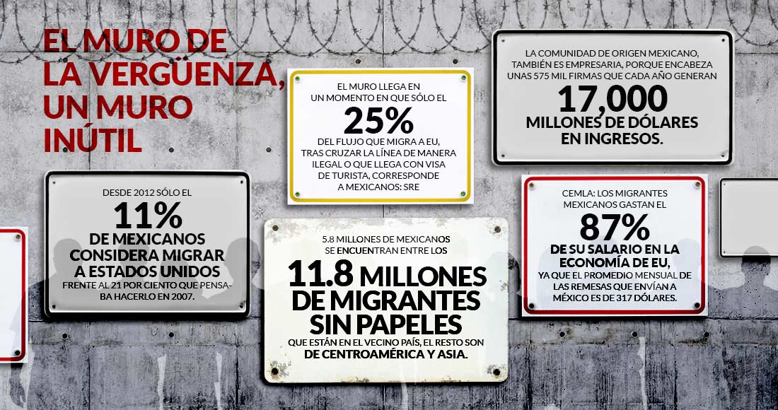 Trump firmó hoy dos órdenes ejecutivas para ordenar la construcción "inmediata" de un muro en la frontera con México y el retiro de fondos federales de las llamadas "ciudades santuarios", en las que las fuerzas locales se niegan a colaborar con las autoridades federales en la deportación de los indocumentados.