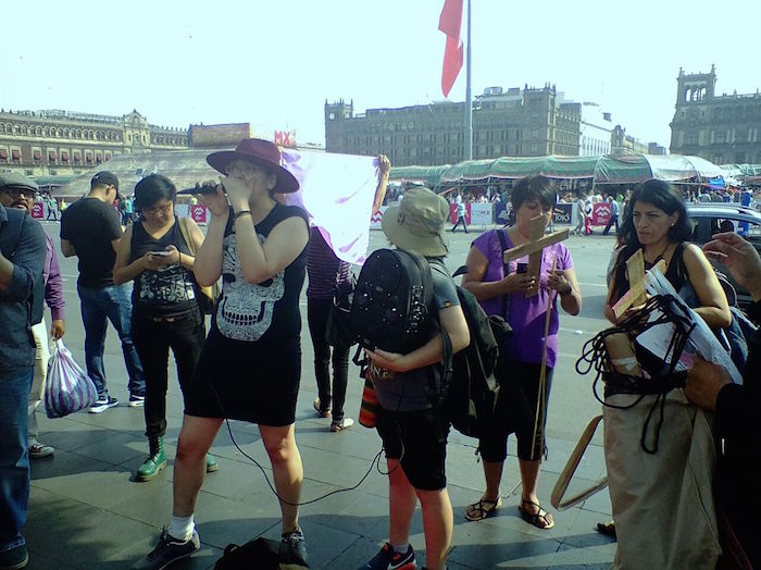 Integrantes de organizaciones y colectivos feministas se reunieron hoy en el Centro Histórico de la Ciudad de México para demandar a Miguel Ángel Mancera, Jefe de Gobierno capitalino, que no se vaya sin antes emitir la alerta de género.