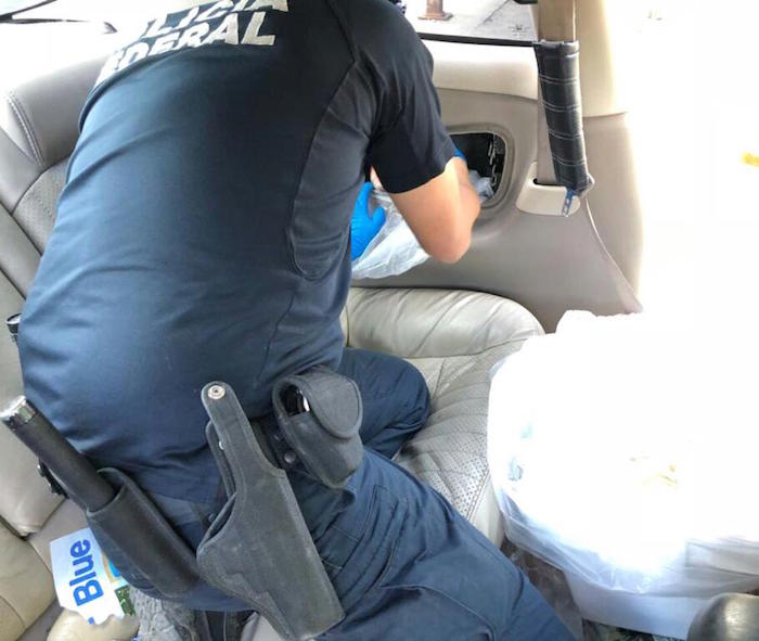 El producto se hallaba, dijeron, al interior de un compartimiento oculto en un vehículo tipo sedán, con placas fronterizas del estado de Baja California, en el cual viajaban 3 adultos y dos menores de edad.