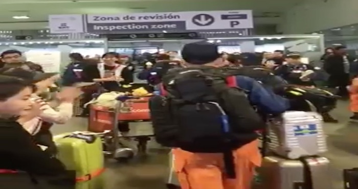 Ciudadanos, que se encontraban en el Aeropuerto Internacional de la Ciudad de México, grabaron el momento en que el grupo de nipones arribaron al país. Al verlos, fueron recibidos con aplausos.