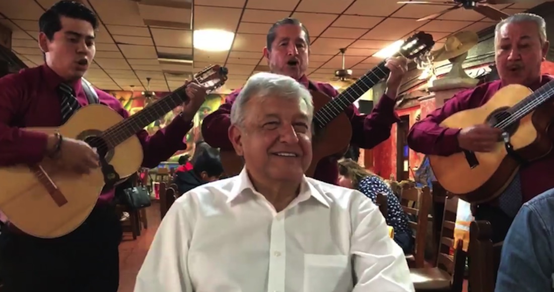 Ayer por la tarde, mientras López Obrador comía en un restaurante de Nuevo Laredo, Tamaulipas, un trio musical decidió dedicarle una canción.
