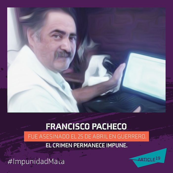 “En los diversos medios donde colaboraba, Pacheco daba cobertura a las fuentes policiaca, política local y de turismo, siendo particularmente crítico de la gestión actual de Omar Jalil Flores, Presidente Municipal de Taxco”, agregó un comunicado de la organización internacional PEN, que también exigió desde entonces se investigara el trabajo periodístico como móvil del crimen.