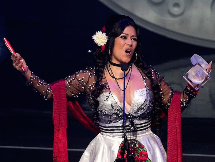 Lila Downs, cuya madre es originaria de Oaxaca, se impuso en la categoría de música mexicana. Durante su número musical dedicó la canción “Urge” a los migrantes e interpretó también “Peligrosa” y “Envidia”.
