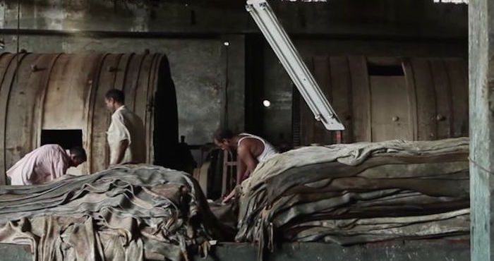 En las fábricas se bañan las pieles de los animales en calderas llenas de productos químicos como parte del proceso del cuero "negro bengalí". Este material se exporta a fabricantes europeos de artículos de cuero en Italia, España y otros lugares.