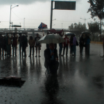 Previo a la lluvia contingentes de trabajadores de los sindicatos Mexicano de Electricistas (SME) y de Trabajadores de la Universidad Nacional Autónoma de México (STUNAM) lanzaron cohetones y consignas contra la reforma laboral que discuten los diputados integrantes de la Comisión de Trabajo y Previsión Social.
