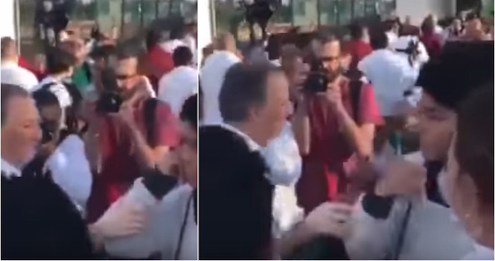 Pero la imagen que más se viralizó fue la que muestra el momento en que un adolescente le niega el saludo al precandidato presidencial.