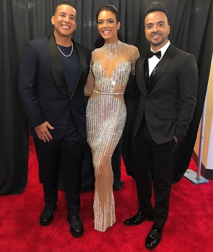 La ex Miss Universo Zuleyka Rivera, protagonista del video de “Despacito”, llegó a la alfombra roja con una rosa blanca en la mano y un vestido de tiras de cristales, con grandes transparencias en las piernas y el torso, que daba un efecto minimalista a su estilo. Durante la ceremonia Rivera bailó en el escenario mientras Fonsi y Yankee interpretaban su éxito mundial.