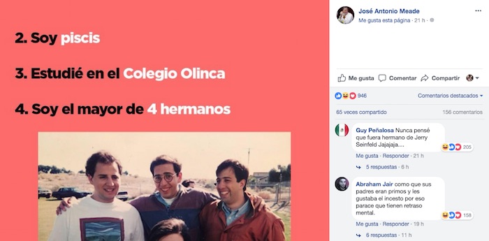 Meade comparte las "49 cosas que no sabías de él", y es trolleado por usuarios de redes