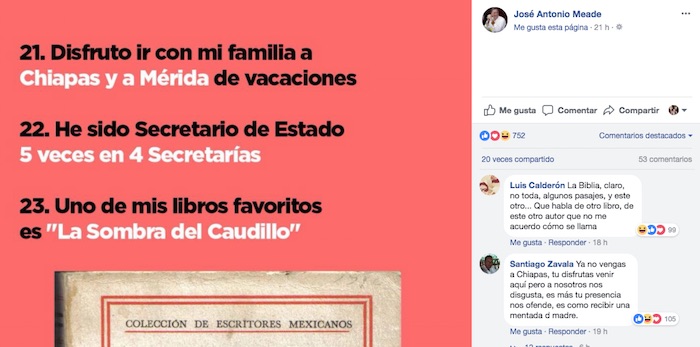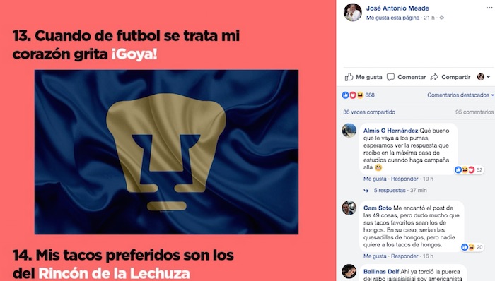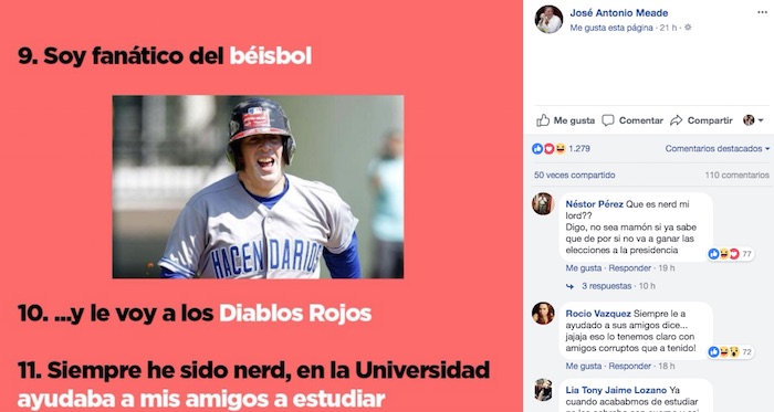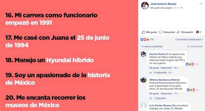 Algunos de los puntos que tuvieron más interacciones fueron el 19, donde Meade se declaraba como un apasionado de la historia de México.