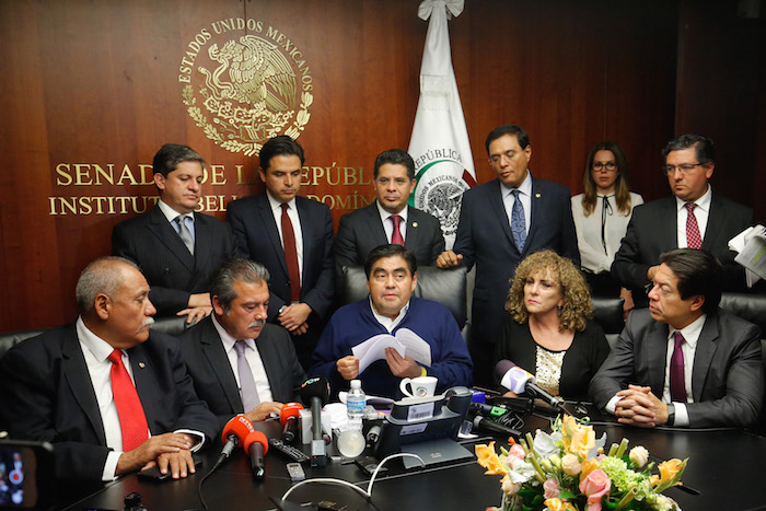 Previamente, once aún senadores del grupo del PRD, a excepción de Ríos Piter, anunciaron que seguían evaluando su salida del PRD para formar un bloque independiente, luego de sostener una reunión con el líder de Morena, Andrés Manuel López Obrador. Finalmente concretaron su salida.