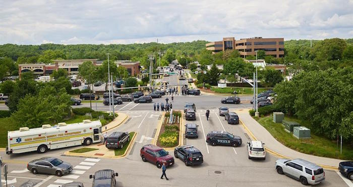 Según los informes policiales, el atacante ingresó al edificio del Capital Gazette hoy sobre las 14:30 hora local (18.30 GMT) y abrió fuego a través de una puerta de cristal matando a cinco personas y dejando heridas a otras dos.