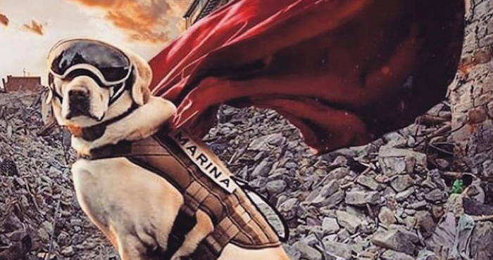 La perra rescatista de la Marina, de casi 8 años, ha alcanzado fama internacional, debido a su labor y su uniforme, conformado por un chaleco con las letras del ministerio, sus gogles y zapatos especiales.