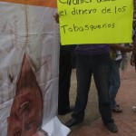 Los manifestantes aprovecharon sus carteles para hacer burla de los 400 pares de zapatos y 300 trajes que Andrés Granier presumió en unas grabaciones difundidas hace un par de semanas.