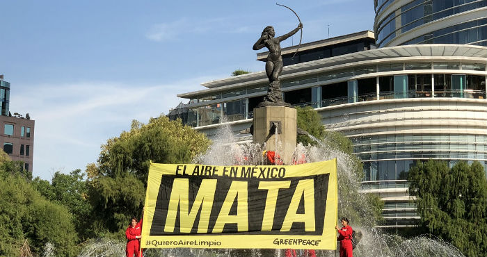 Un grupo de activistas medioambientales puso una manta con la leyenda "El aire en México mata", la cual busca evidenciar que la mala calidad del aire cobra la vida de al menos 48 personas diariamente en México.