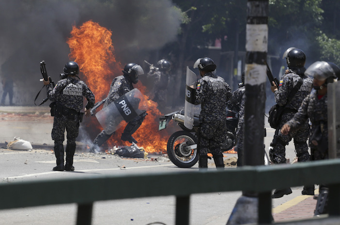 Cerca del mediodía, una motocicleta en la que se trasladaba un policía se incendió tras una explosión que ocurrió a un lado de la plaza Francia de Altamira, en Caracas, cuando fuerzas de seguridad dispersaban a decenas de manifestantes que protestaban contra la Constituyente. Tras la explosión y el incendio, ocho policías resultaron heridos por quemaduras.