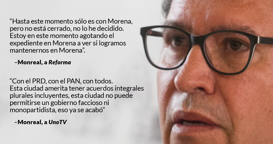 Más tarde, con otros dos medios, Monreal fue más abierto. Les dijo ayer que con o sin Morena, pensaba ser candidato.