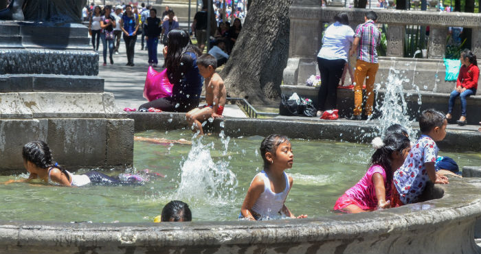 Ciudad de México, 31 de mayo (SinEmbargo).- En los últimos días la mayoría del territorio del país ha registrado temperaturas superiores a los 35 grados Celsius, por lo que las personas buscan resguardo bajo la sombra de árboles y sombrillas, cubren sus cabezas con prendas de ropa u objetos, tratan de hidratarse con bebidas o alimentos fríos y buscan refrescarse en las fuentes instaladas en diversas ciudades.