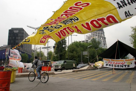 MEXICO, D.F., 07AGOSTO2006.- Cada vez luce mas atiborrrado de casa de campaa, lonas y cuerdas para sosternerlas, en el Paseo de la Reforma, cuando se cumplen ms de una semana de plantn por parte de los simpatizantes de la coalicin Por el Bien de Todos.