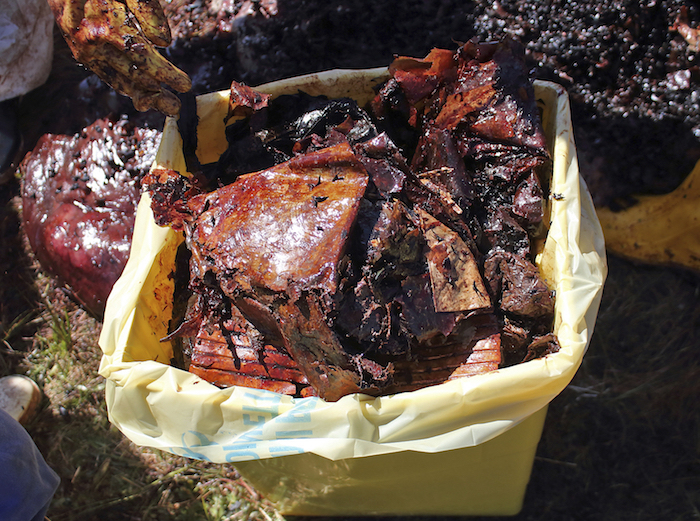 El examen también determinó que la ballena llevaba un feto muerto en estado avanzado de descomposición. Los expertos dicen que la ballena fue incapaz de digerir calamares debido a la gran cantidad de plástico que había ingerido y ocupaban dos terceras partes de su estómago.