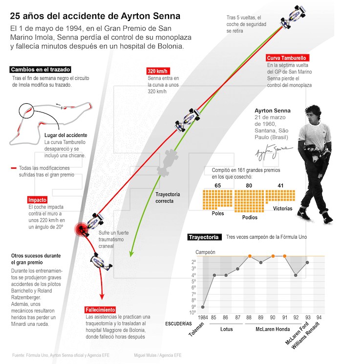 25 años del accidente de Ayrton Senna. Infografía: EFE