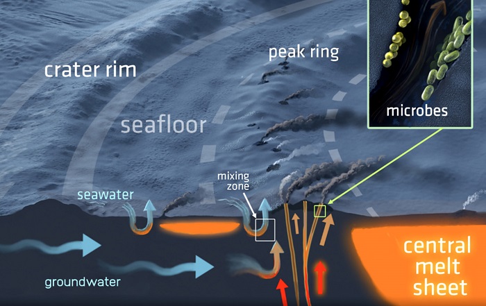 Aunque la expedición sólo aprovechó el sistema hidrotermal en una ubicación, Kring dice que "los resultados sugieren que había una cadena de respiraderos de agua caliente de aproximadamente 300 kilómetros de largo en el anillo de pico y respiraderos adicionales dispersos por el piso del cráter a medida que el impacto se derretía. Importantemente, tales sistemas hidrotermales pueden haber proporcionado hábitats para la vida microbiana ". Los sistemas hidrotermales volcánicos de Yellowstone son ricos en organismos microbianos e implican que los sistemas de agua caliente generados por impacto tienen el mismo potencial biológico. Kring concluye: "Nuestro estudio del núcleo de roca de la expedición de un hábitat potencial de la Tierra profunda proporciona evidencia adicional de la hipótesis del origen del impacto de la vida. La vida puede haber evolucionado en un cráter de impacto".