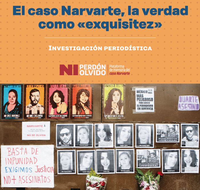 La Plataforma para la Memoria del Caso Narvarte se compone de dos informes especiales sobre el caso, una novela gráfica en memoria de las víctimas y una serie de cuatro podcasts y recuerda las dificultades para obtener justicia de los familiares de Mile Virginia Martín, Yesenia Quiroz Alfaro, Nadia Vera Pérez, Alejandra Negrete y Rubén Espinosa Becerril, quienes fueron asesinados después de que Rubén y Nadia habían sufrido ya una persecución política por lo que tuvo que desplazarse de Veracruz a la Ciudad de México.