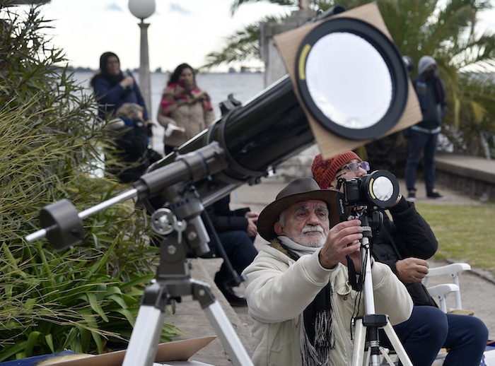 “Yo he estado mirando el cielo desde niño. Mi primer telescopio era de cartón,” dijo Ricardo Rumie, un veterano observador de eclipses de 68 años que instaló su cámara con un trípode y un telescopio con un filtro solar a lo largo de las orillas de la laguna. “He visto otros (eclipses), pero no así como éste... Dije: no me lo puedo perder. Para mí es algo supremo”.
