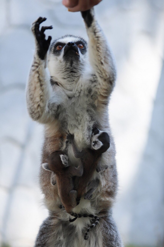 “Zelda” dio a luz a dos crías de lémur cola anillada, las cuales pasarán alrededor de dos semanas agarradas al vientre de la madre y posteriormente pasarán a su espalda y empezarán a convivir con toda la manada.