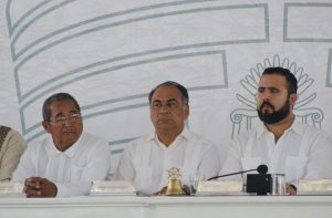 Estuvieron en la mesa el Secretario General de Gobierno, Florencio Salazar Adame; el Delegado Federal en Guerrero, Pablo Amílcar Sandoval Ballesteros; el comandante de la Novena Región Militar, Juan Manuel Rico Gámez; el comandante de la 35 Zona Militar, Ernesto Ávalos Pardo.