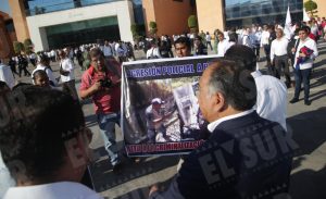Al término de la ceremonia, cuando el Gobernador ya se dirigía al vestíbulo del edificio Centro, varios reporteros se le colocaron enfrente con lonas que decían: "Represión policial a reporteros. No estaban en medio. Alto a la criminalización gubernamental", le reclamaron su postura sobre las agresiones que sufrieron la semana pasada cuatro reporteros, entre ellos la fotógrafa de El Sur, Jessica Torres.