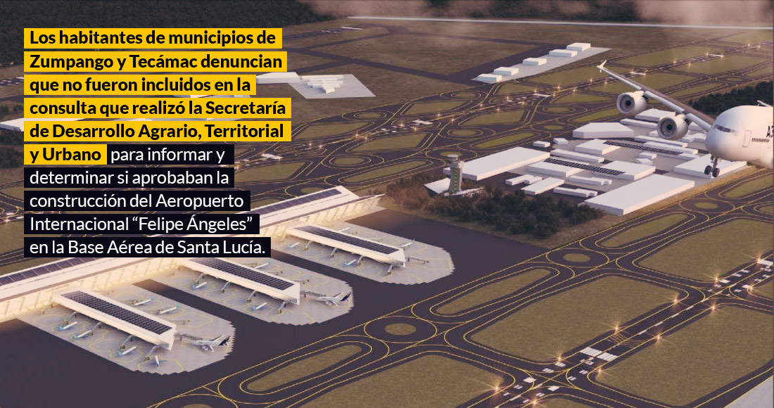 Ciudad de México, 3 de mayo (SinEmbargo).- La consulta que realizó la Secretaría de Desarrollo Agrario, Territorial y Urbano (Sedatu) el pasado 10 de marzo para informar y determinar si los habitantes aprobaban la construcción del Aeropuerto Internacional “Felipe Ángeles” en la Base Aérea de Santa Lucía, excluyó a dos municipios colindantes a ese terreno: Zumpango y Tecámac.
