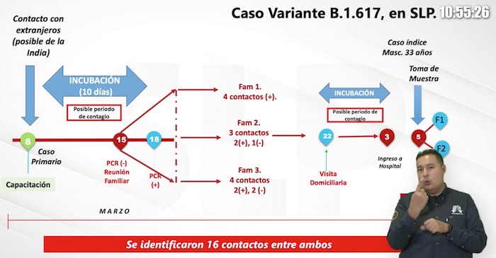 Ayer, la Secretaría de Salud de San Luis Potosí identificó a la primera persona contagiada con la variante de la India. Hoy informó que la infección se originó durante una capacitación empresarial. Hasta el momento ha identificado a 16 contactos.